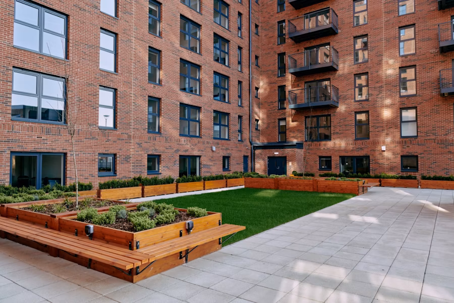 Just a stroll away from Leeds city centre, The Pin Yard offers a new way of hassle-free living. Each apartment is stylishly designed with a modern open-plan kitchen, dining and living space. Most apartments come with a generous balcony, many overlooking the private garden terrace.